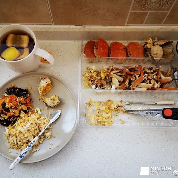 三五年前 突发奇想 蒸了五对大闸蟹,大概率不是阳澄湖的,但也是江苏原产。一把剪刀✂,三五只后,直接在去蟹腿肉时给中指剪了一个V字,血流如注,万幸没有剪到血管,不用去医院🏥。制作美食的岁月痕迹😂当年(2023年)微博发了今天找了出来。