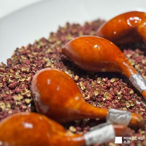 本菜以粤菜“脆皮乳鸽”为骨架、追求极致的皮脆肉嫩、但我们想走得更远,于是引入了川菜的花椒,脆皮粤菜手法赋予形以花椒调味赋予魂。