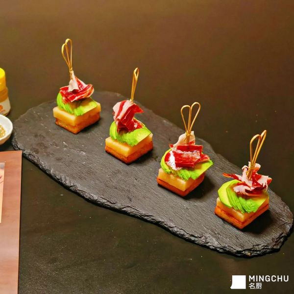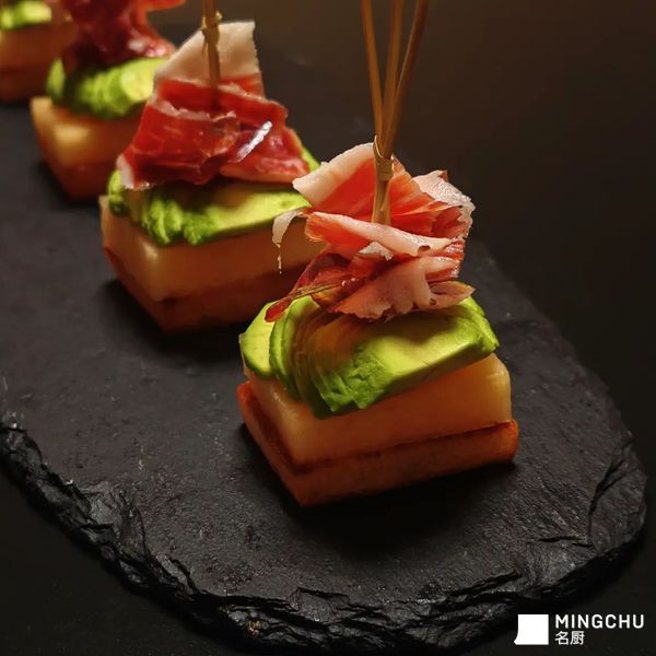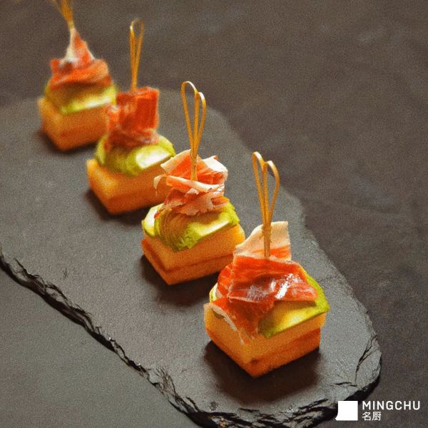 这道菜品的灵感,源于地中海风味与日常煎的烹饪技巧融合,将西班牙餐桌标志性的“伊比利亚火腿配哈密瓜”经典组合,与松软面包碰撞出新的味蕾火花。伊比利亚火腿自带橡果熏染的醇厚脂香,咸鲜中带着一丝坚果般的回甘,而哈密瓜的清甜多汁恰好能中和火腿,它既可以是早餐桌上的清爽开启,也能成为下午茶的精致小点,一口下去,火腿的柔韧、蜜瓜的脆嫩、面包的松软在口中层层绽放。The inspiration for this dish comes from the clever fusion of Mediterranean flavors and everyday cooking, combining the iconic combination of "Iberian ham with cantaloupe" on the Spanish dining table with soft bread to create a new spark of taste buds. Iberian ham comes with a rich and creamy aroma infused with acorns, with a hint of nutty sweetness amidst its saltiness. The sweet and juicy taste of cantaloupe perfectly balances the ham, making it a refreshing opening for breakfast or a delicate snack for afternoon tea. With just one bite, the flexibility of ham, the crispness of honeydew, and the softness of bread bloom layer by layer in the mouth. #伊比利亚火腿 #第125期试用