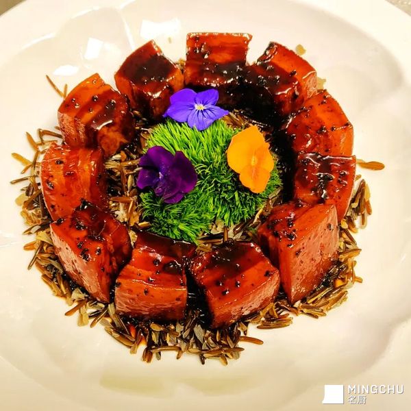 这道菜的口味特点是咸甜酥烂的红烧肉、浓郁独特的黑松露菌香、与弹糯清香的野米三者交织,共同构成奢华、复合且有层次的用餐体验。冰湖野米谷物为整道菜提供了与众不同的口感和风味支撑。独特的口感:冰湖野米外皮略韧,内芯弹糯,带有明显的嚼劲。