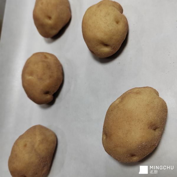 以优质黄心土豆泥融入软欧面团,经手工塑形打造出1:1仿真土豆外观,表皮轻撒细粉模拟土豆表皮质感,造型憨趣逼真,创意十足。面团中土豆泥与小麦粉黄金配比,经低温慢发酵工艺,成品松软绵密,麦香裹挟着浓郁薯香,入口自带土豆的自然清甜,口感温润不腻。兼具颜值与风味,是一款极具创意的治愈系主食面包,适配早餐、下午茶场景,一口解锁食材本味与创意巧思。