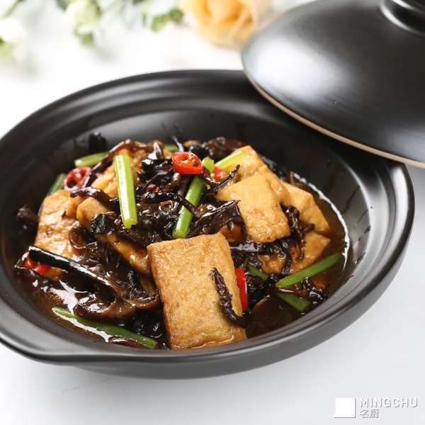 选用东北大山里的野生榛蘑与卤水豆腐一起烧制,菌香浓郁,回味无穷。