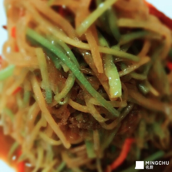 潍坊典型的代表菜,也是我从小吃到大一道菜,由潍坊特产萝卜 肉丝 辣椒炒至而成,口味咸鲜酱香浓辣,用景芝三叶饼卷食,更是一番滋味。