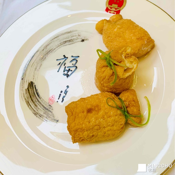 鸡汤出来的福袋,搭配牛肝菌、羊肚菌、松茸菌加以虾胶制成的馅料,让爆汁绽放在口腔