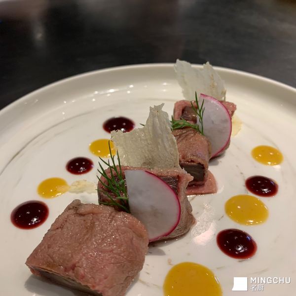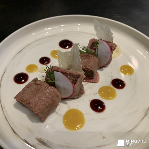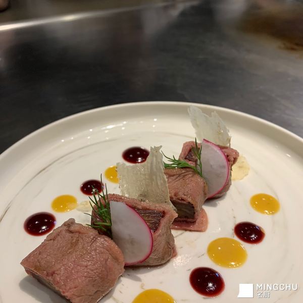 以行動支持鳳梨農 謝謝你們種出這麼好的鳳梨🍍中國台灣鳳梨浸泡在紅酒內一天一夜 充分吸收酒的香氣 利用鐵板燒的高溫將牛肉煎熱 捲起鳳梨 微甜微酸又富含紅酒香氣 跟牛肉是絕配#鳳梨 #prime沙朗 #甲州ワイン #紅酒 #wine #犇極上 #鐵板燒 #teppanyaki #五感料理 #cheflife #台北美食 #微風南山