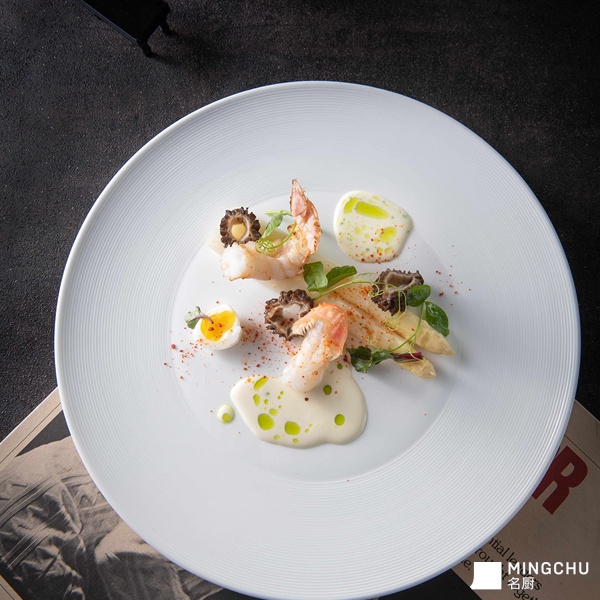 鲜甜白芦笋遇上海味十足的鳌虾,浓香的甜椒粉,烹出复合味冷菜。