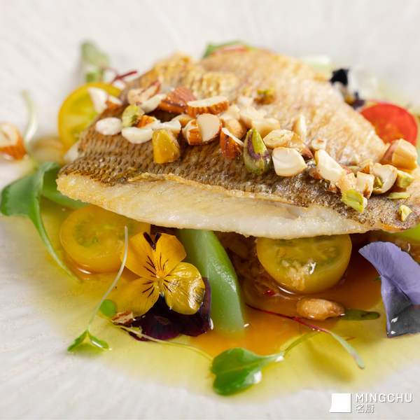 香扒脆皮鲈鱼佐油浸樱桃番茄
