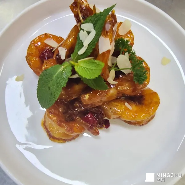 选用南美白虾作为原料,虾肉质地饱满,高油温猝炸虾表皮特别酥脆,再裹上酸甜口的宫爆汁,特别爆赞!