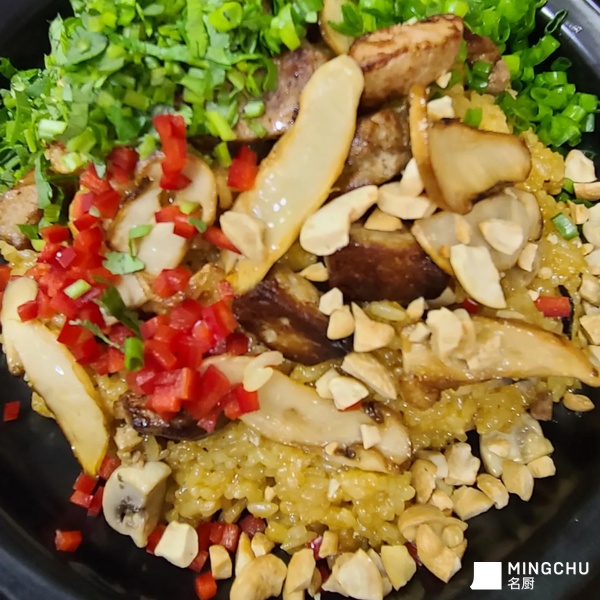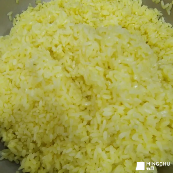 广东顺德传统糯米饭改良菜品,用黄栀子水给糯米饭调色金黄色很漂亮!