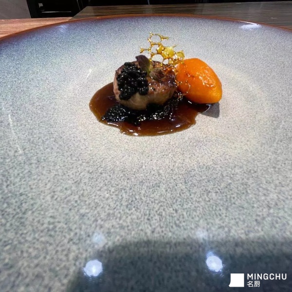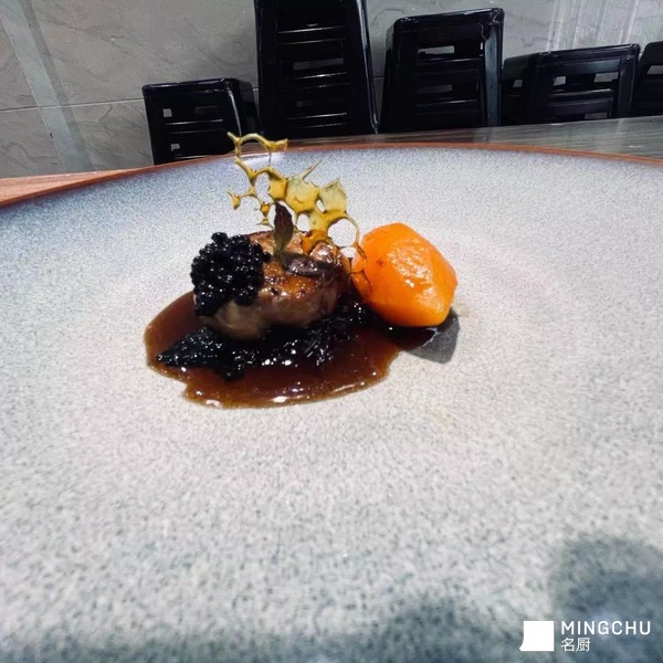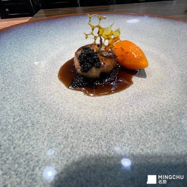 鹅肝细腻的口感,鱼子酱的咸鲜,与酸甜的红酒洋葱