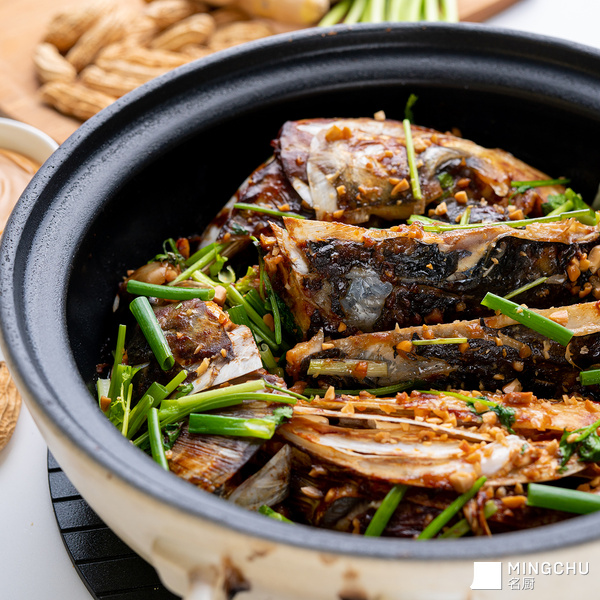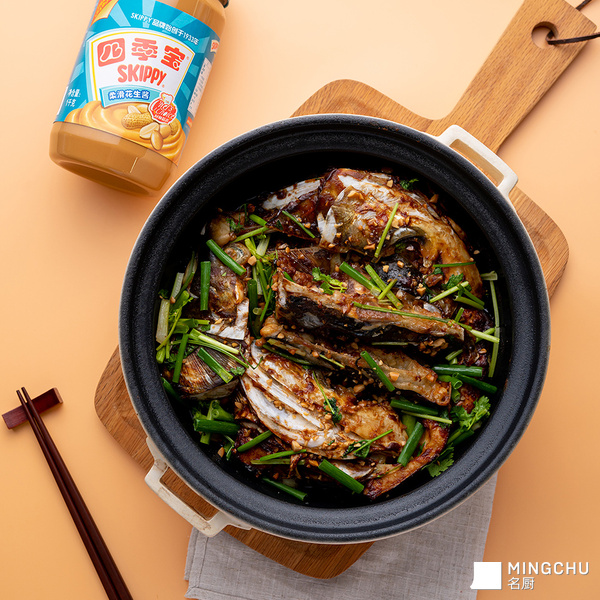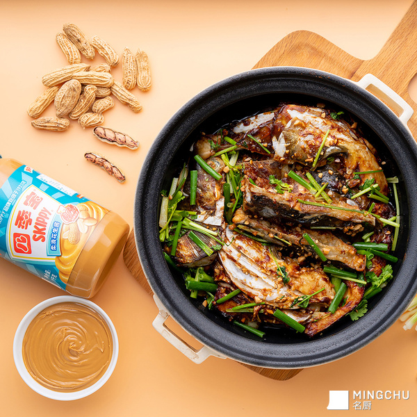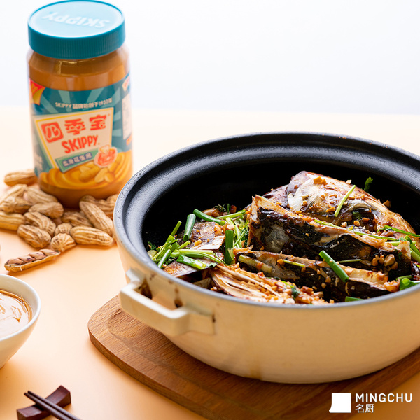 以花生碎、四季宝花生酱与啫啫煲相呼应。用四季宝的增香作用,大大提升了啫酱的香气。很好地为生鱼嘴去腥,还将啫⻥嘴的亮泽度拔高一个层次。让整道菜飘香四溢,吃起来更是浓郁香口。同时菜名本身非常吉利,取花生彩头(粤菜也讲究菜品的美好寓意和祝福)。