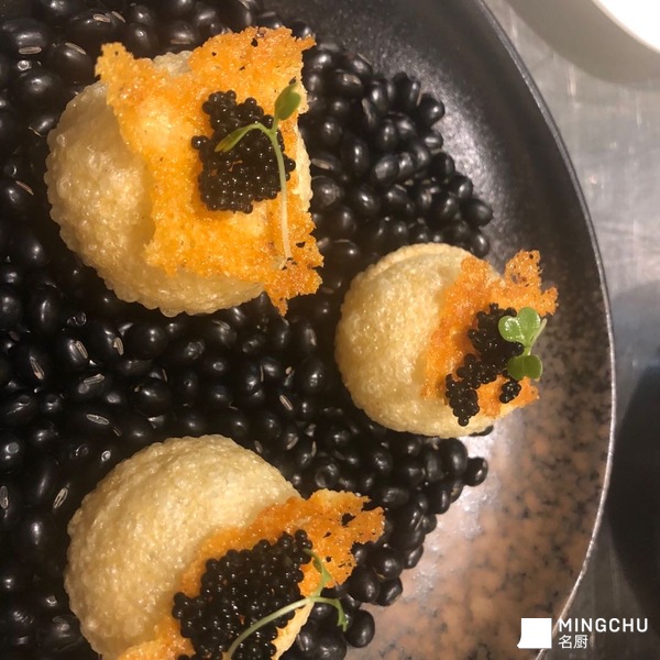黑松露土豆球 巴马臣脆芝士 黑鱼籽酱