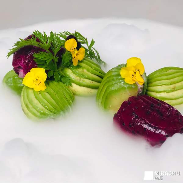 牛油果的味道搭配水果、酸黄瓜和蟹腿肉(纯蟹肉)配上自制的一款沙律酱。