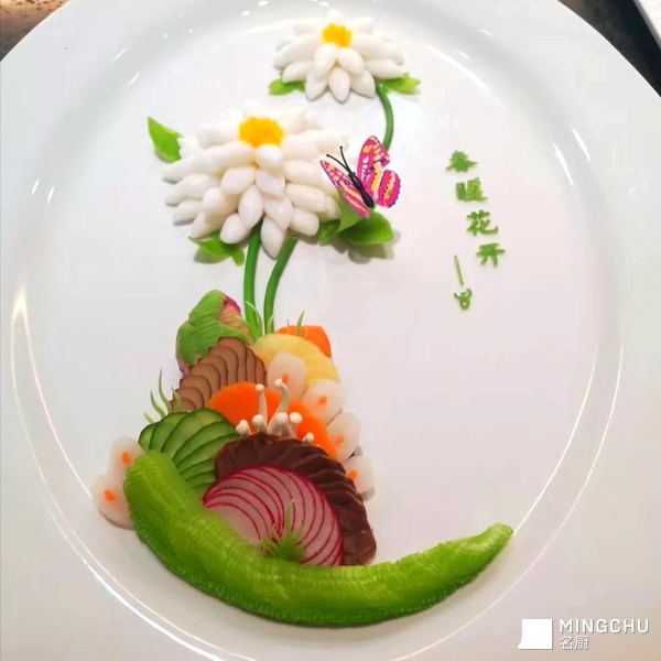 传统鱼丸做成汤或者勾玻璃芡居多,这次做成了冷拼形式,上桌后沾酱油醋来食用,让鱼丸换一种吃法!装盘后的效果正如诗中提到的一样“苔花如米小,也学牡丹开”