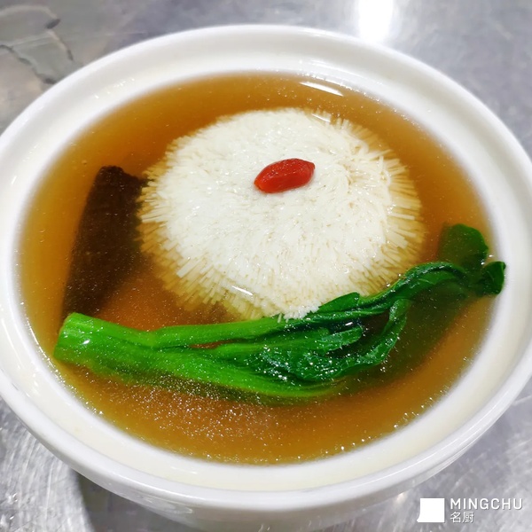 羊肚菌与绣球豆腐加入素高汤一同蒸制而成。