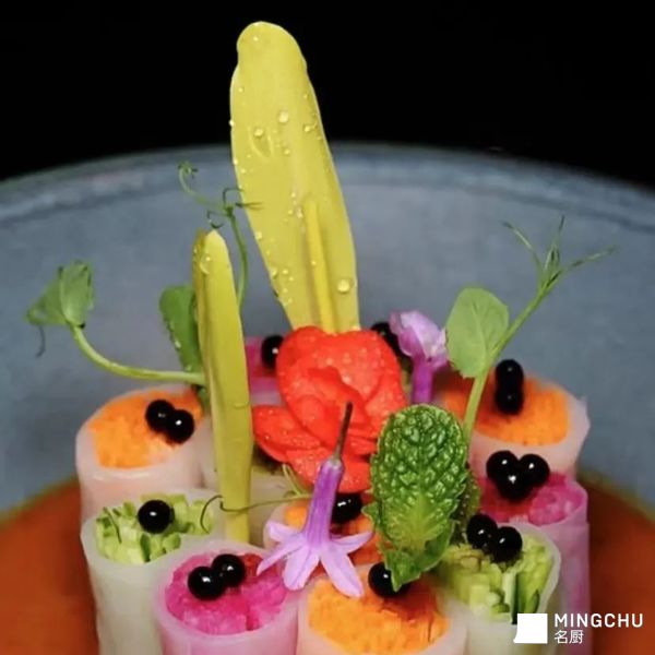 五彩麻酱凉皮(陕西人夏日最佳的三秦套餐{凉皮 肉夹馍 冰峰)点缀可食用的五彩鲜花