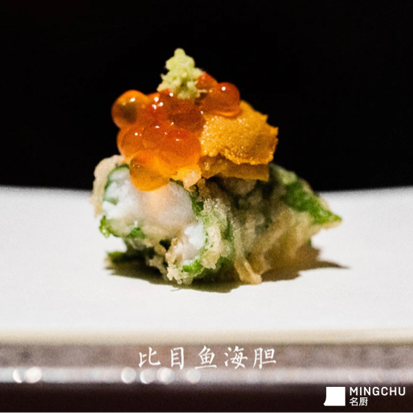 比目鱼天妇罗配海胆三文鱼籽