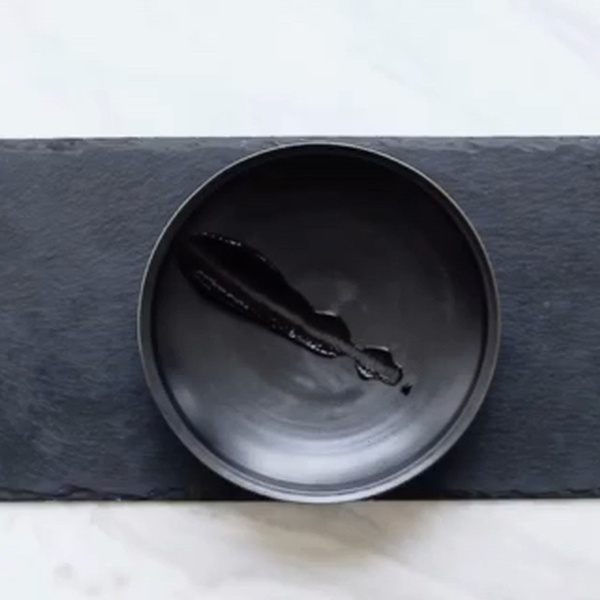 首先映入眼帘的是黑脆米,酱油和几种不同的小珍珠的运用,但如果我们进一步研究这道菜品的装饰技巧的话就会发现色彩这一要素起到了重要的作用。这道菜是一道典型的杭州菜,名字是东坡肉。它的外观是比较粗糙普通的,为了追求一种高雅大气的效果,我们在装饰时选用了同色系的颜色,在形态也采用了对称的装点方式,并增加了造型高度。餐具上我们选择了中式传统乡村餐具,为整体造型增添了朴素优雅的色彩。安东尼奥高迪说,“建筑就是光的秩序,雕塑就是光的游戏。”