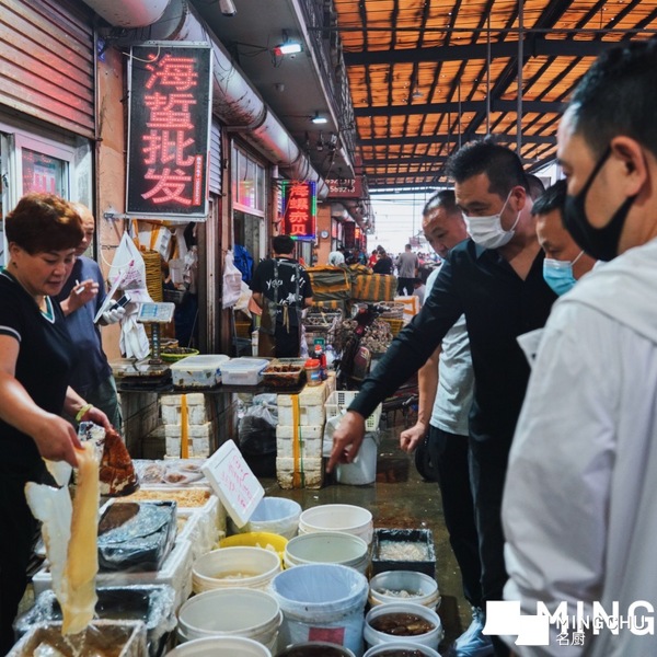 #主厨寻味 #烟台寻鲜记 #九田国际水产品批发市场清晨 6 点,主厨们便已来到了热闹喧嚣的烟台九田国际水产品批发市场中,了解烟台的海鲜食材。新鲜上市的梭子蟹、个头饱满的大刀鱼、肥厚鲜活的大海螺、鲜甜美味的活海胆、品类繁多的海蜇都吸引着他们的注意力。主厨们纷纷拍照,并了解各种食材的价格以及当地特色的烹饪方法。
