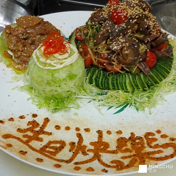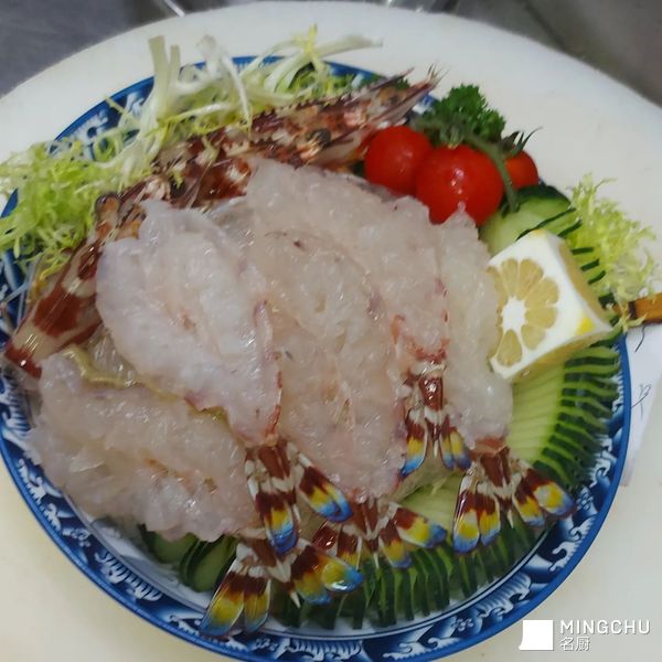 🦐蝦油撈海蜇頭伴黑松露海参~花蝦刺身椒鹽蝦頭