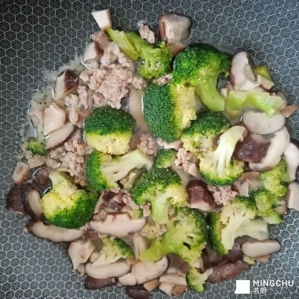 快手菜懒人菜西兰花香菇猪肉碎