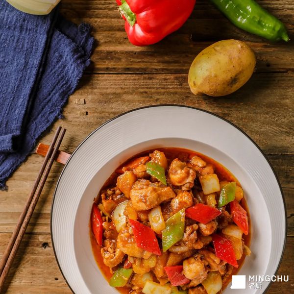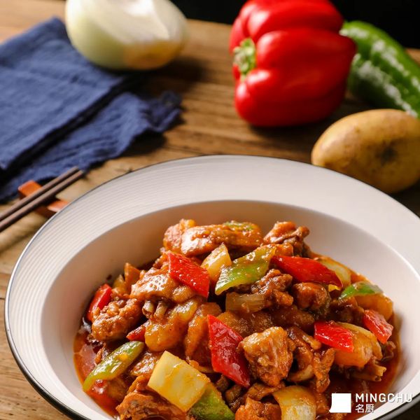 大盘鸡是新疆维吾尔自治区塔城地区沙湾市的特色美食,20世纪80年代起源于新疆公路边饭馆的江湖菜,主要用鸡块和土豆块炒炖而成。传统的沙湾大盘 鸡烹饪用料繁琐,需要炒制糖色,口味把控困难,对厨师烹饪功底有较高要求。使用太太乐菜谱式调味料,方便简单,成菜色泽鲜亮、口味统一。