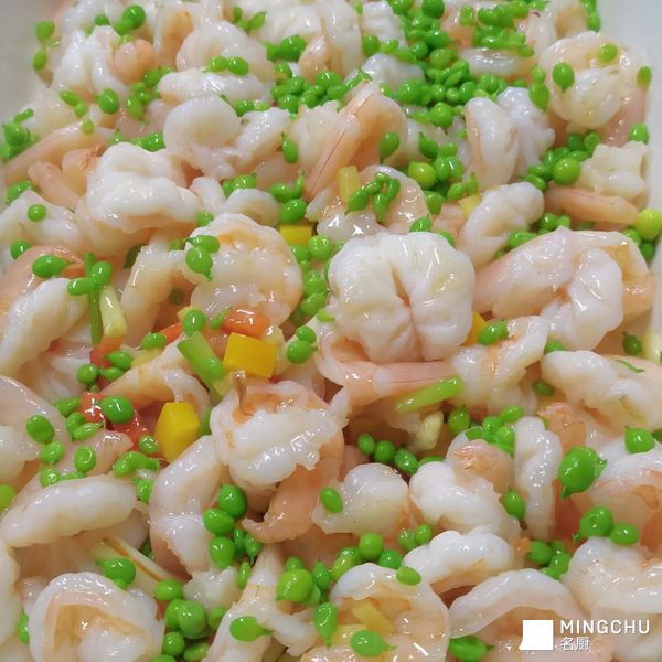 青豆滑炒虾球