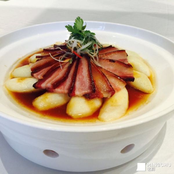 一道本土菜肴,将山药蛋和腊肉融合、冬季非常适合!