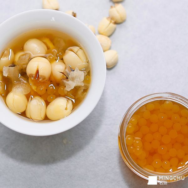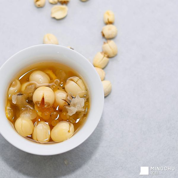 老陈皮理气健脾、燥湿化痰、莲子补脾益气、养心安神、益肾涩精、加上少许的黄姜 、是一道季节里的养生甜品🍮