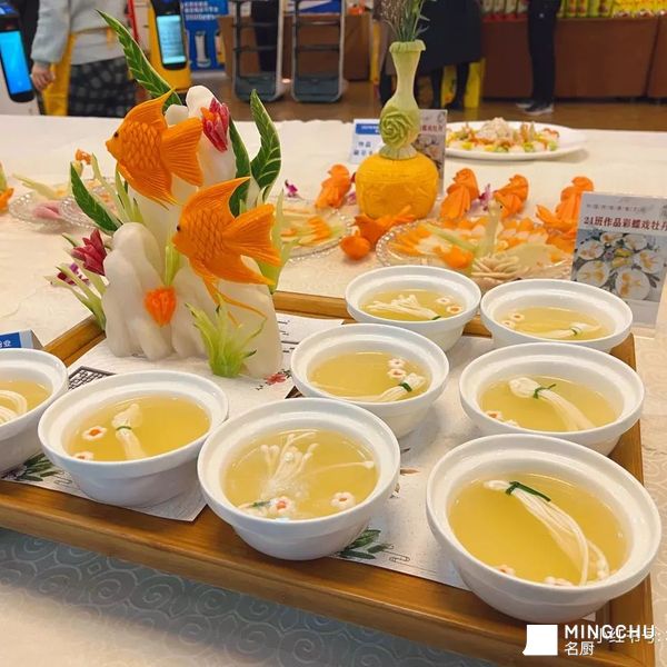 鱼蓉菜一直以来是大赛首选菜品,其制作工艺复杂,造型漂亮,受到评委们的喜爱。