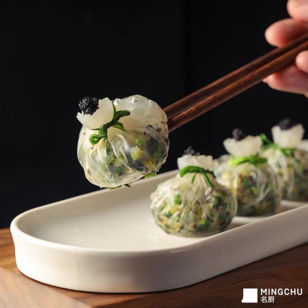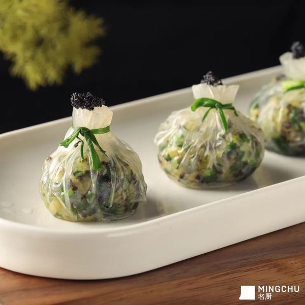 来源于石榴包的灵感,选取海蜇与荠菜的碰撞,脆爽清香的口感,黑松露赋予香的升华。融入太太乐鸡汁的相得益彰的鲜美,给予了这道菜灵魂。