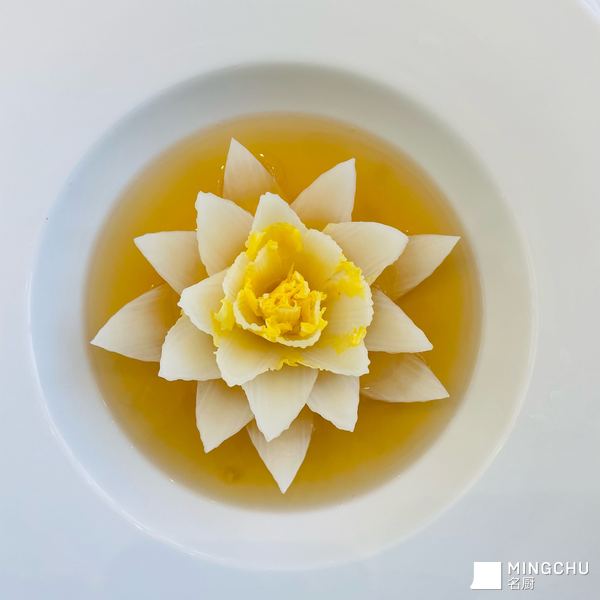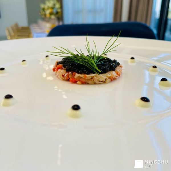 蟹肉塔塔鱼子酱;鹅肝脆球;帆立贝搭配甜豆芯;开水白菜;鸡肉塔塔