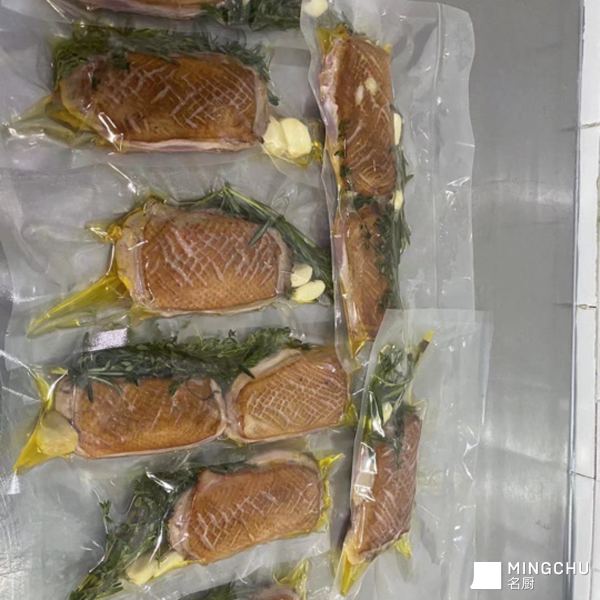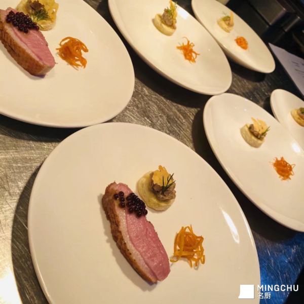 法餐的经典料理香橙鸭胸的不同烹饪方式呈现,低温慢煮的手法更能保留鸭胸的汁水,风味更浓郁。