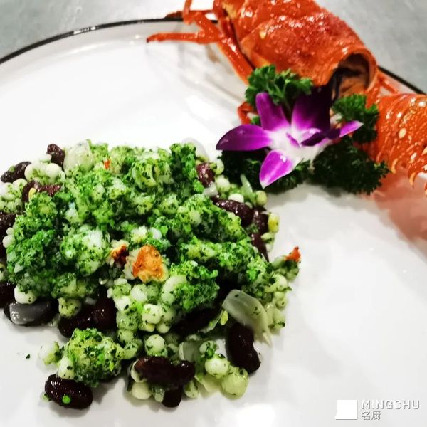 春天的绿色的感觉,芥菜,雪芽,百合,鸡头米,龙虾合烹而成