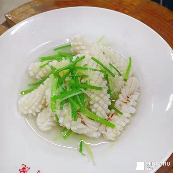 芫爆是爆的其中一种烹调方法,配料就是芫荽,口味特点是咸鲜脆嫩。鱿鱼打上十字花刀在沸水中烫8秒钟就马上倒出,对于火候的运用十分严格,多一秒口感就皆然不同。 芫爆鱿鱼卷在鲁菜的胶东菜中占有着重要的地位,是胶东菜的代表菜之一。