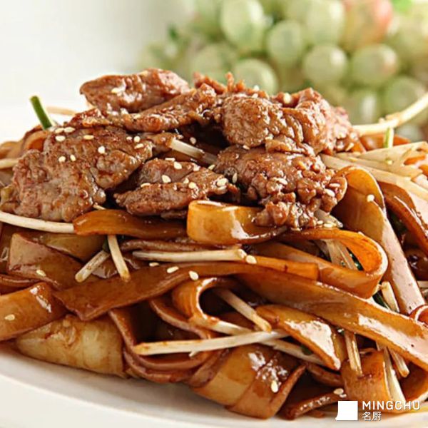 干炒牛河是广东省广州市的一道特色小吃,属于粤菜系,该菜品由芽菜、香葱、韭黄、河粉、牛肉等材料制作而成,于清末民初年间发明。河粉又称沙河粉,源自广州沙河镇。通常煮法是放汤,或炒制。干炒牛河被认为是考验广东厨师炒菜技术的一大测试,手艺好坏一试便知。