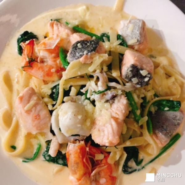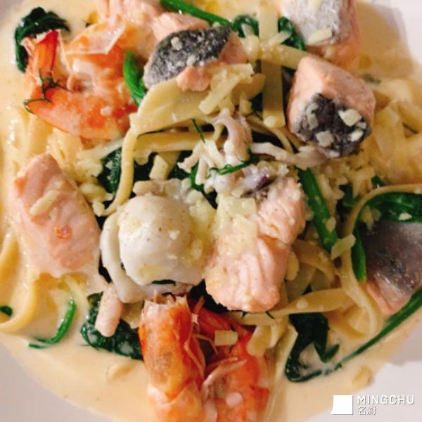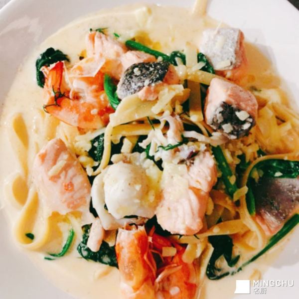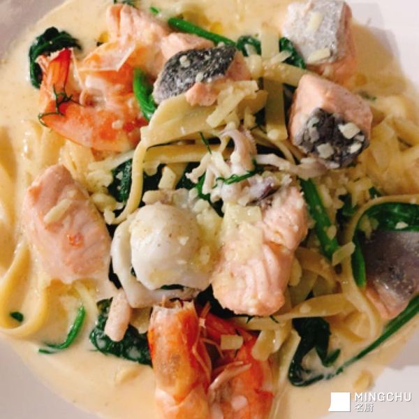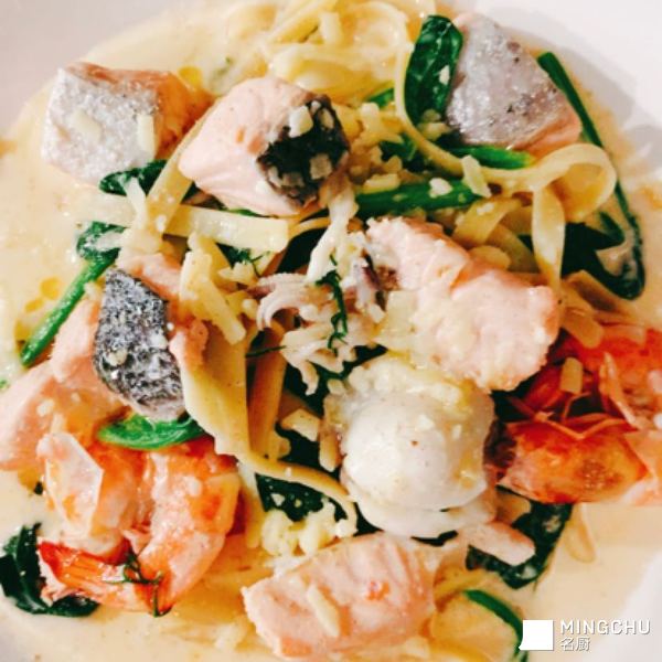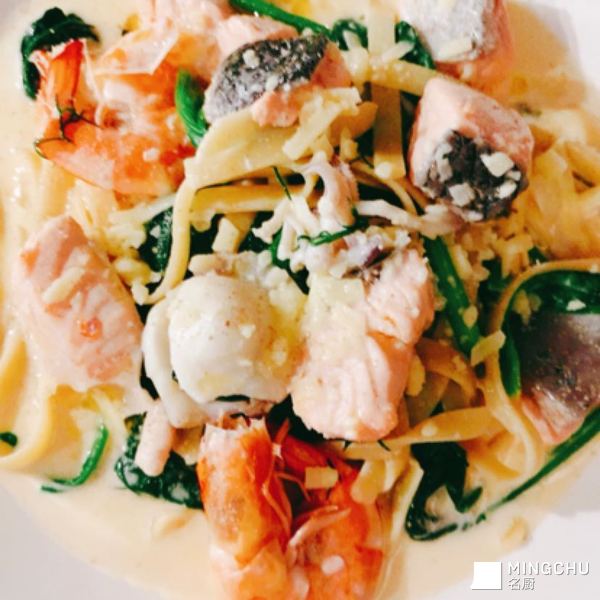 白汁🥬菠菜三文魚意粉🍝