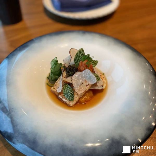 池鱼王丰富的油脂,通过明火炙烤,激发油脂香气。搭配新鲜黑松露和鱼子酱,层次分明