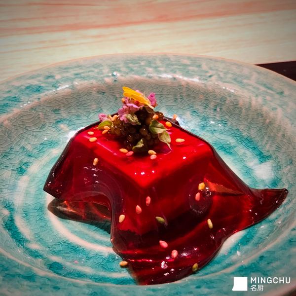 鹅肝是世界三大美食之首,再加日本清酒和昆布高汤低温慢煮,让鹅肝吸收清酒和昆布的味道,清香而不油腻,再加上红酒冻淡淡的红酒香味,口腔中复合的味道,瞬间在口腔中炸开,让人回味无穷!