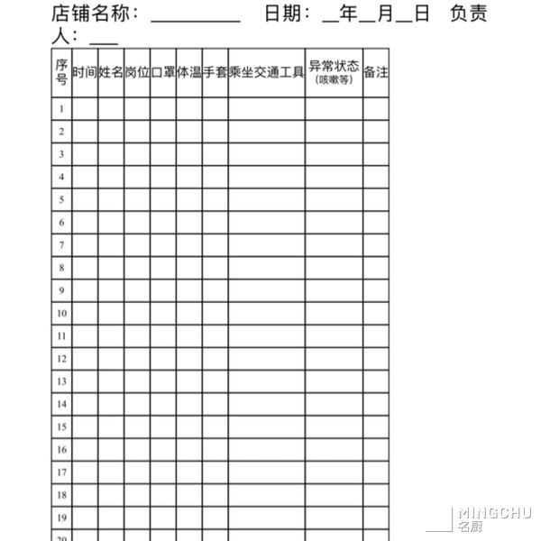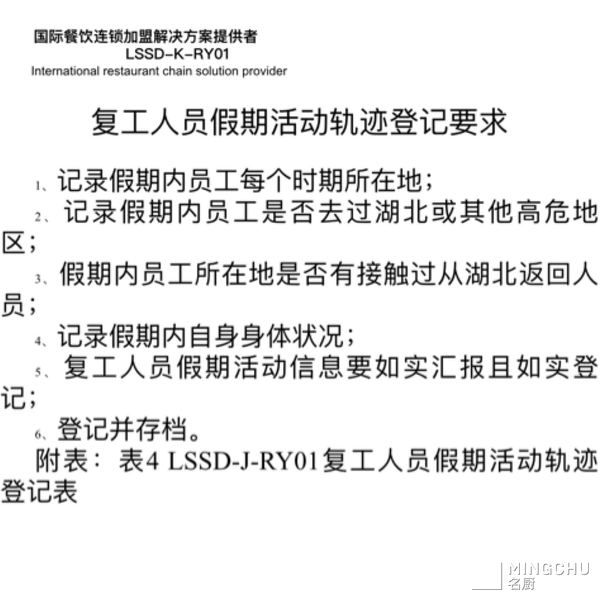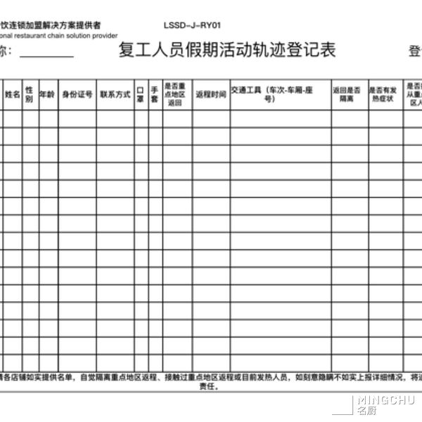 #实用工具#疫情专题员工健康管理餐饮是劳动密集型产业,员工是管理者最坚实的后盾,也是特殊时期我们要首先保护的人。老板服务好员工,员工才能服务好顾客。门店重视了员工的安全,员工才能重视顾客的安全,下边的几份表格,从员工的假期活动轨迹开始追踪,登记每日健康状况,规范岗位职责及着装要求。大家可以根据自己门店需求进行调用。#疫情复工文件