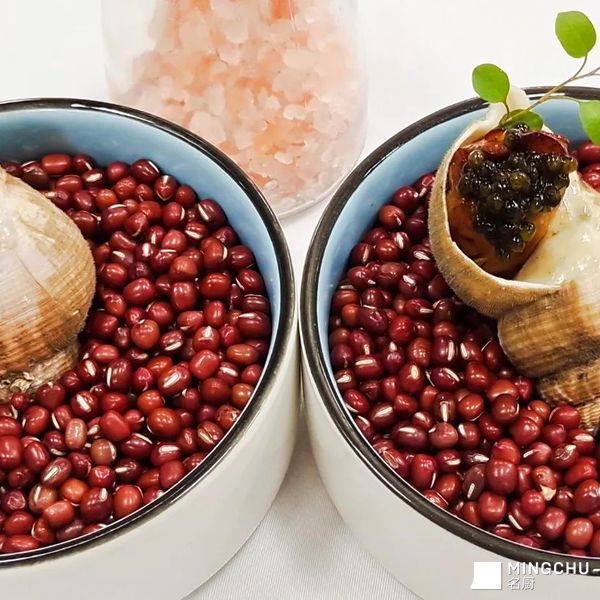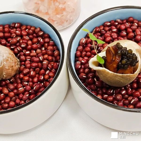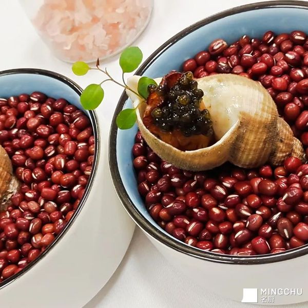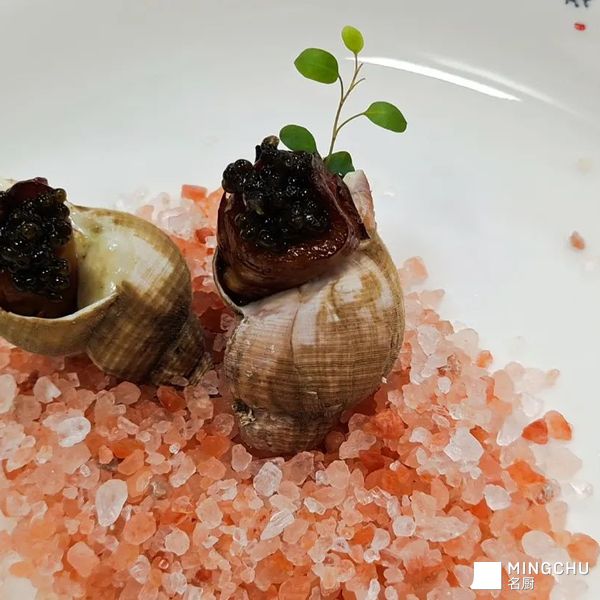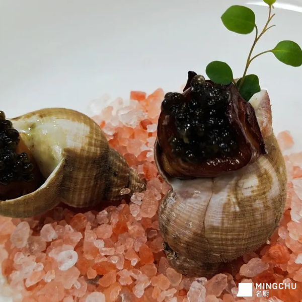 白螺肉肉质紧实,运用北方熏酱的做法,搭配卡露伽鱼子酱,瞬间提升菜品档次,夏季配酒佳肴