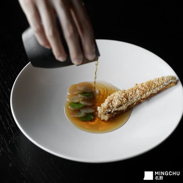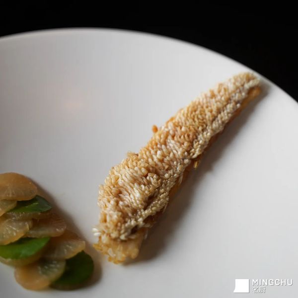 这是一道鱼的料理,甘鲷立鳞烧,搭配着日式出汁做的胡萝卜。禅,侘寂。
