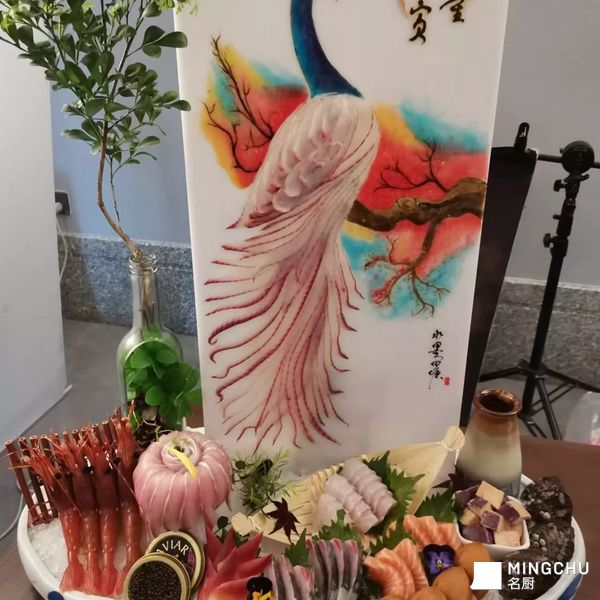 刺身拼盘是一道美食,大多由生鱼片等搭配制成,配芥末酱油汁沾食,口味清新独特,是具有传统的料理特色的食品。刺身以漂亮的造型、新鲜的原料、柔嫩鲜美的口感以及带有刺激性的调味料,强烈地吸引着人们的注意力。