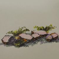 鱼腹生食,辣根日本酱油,简单直接,肥腴丰润,入口鲜绵带微微甜口,如奶油般丝滑。鱼尾薄,整块用干炒的香料海盐加沙糖盐渍,入冷藏冰箱静置,后天吧,在用松枝烟熏下,配点橄榄油,做个早餐小食极好,正常腌制很少用到炒盐,这个方式学习的南方火腿的方法,熟香入盐,风味独特,里面还会有些小的技巧,大家可以翻找火腿腌制。原想仿用胶东鲅鱼水饺的方式,把三文鱼切小丁,加熟五花肉沫,放胡椒,一点韭菜,加盐调味,上锅大火5分钟,想象着味道应该也是绝美的,下次吧,一定做个样品出来满足自己。鱼身处理相对简单很多,按照常态低温油浸,腌制煎烤,方式方法大抵在这里面转来转去,其中有的差别,看制作者对于食材,香料,味道,地域要求相互转化融合的程度。