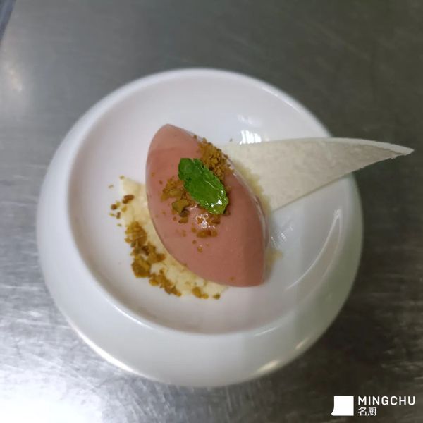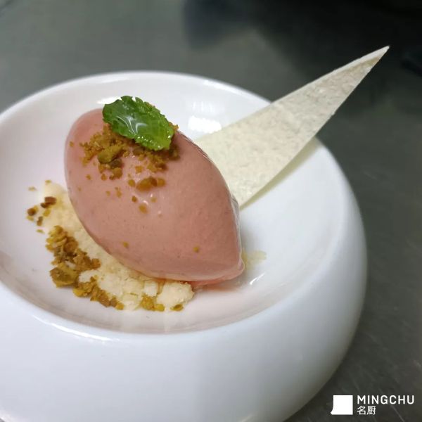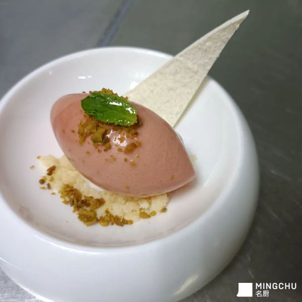 番茄草莓雪芭,配柠檬酥粒,椰蓉巧克力,香草油