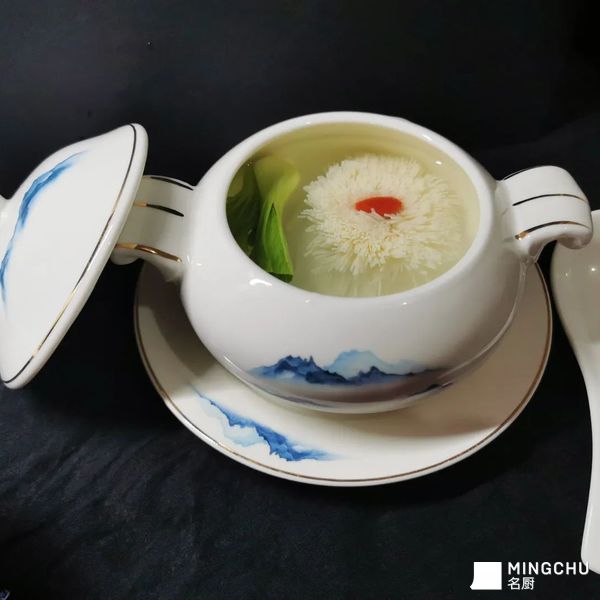 菊花豆腐是传统国宴上的经典名菜,同时也是考验厨师的刀工和吊汤火候功力的一道传统豫菜