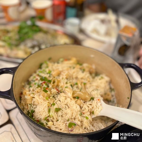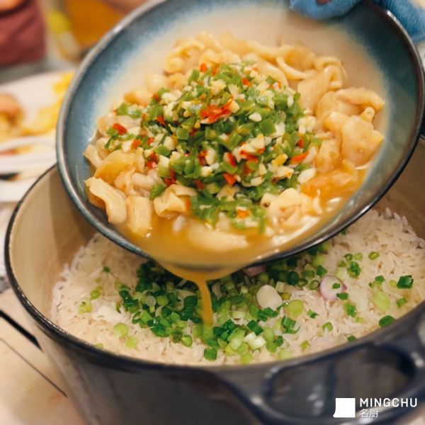 發好的花膠放冰箱, 想吃時加鮑魚汁+蠔油炆煮,再放上剁椒蒸,舖上瑤柱湯煮煲仔飯底。