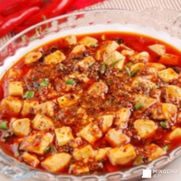 材料:豆腐300克,猪肉馅100克,海参10克,香葱1棵,生姜1小块,大蒜6瓣,花椒1大匙,淀粉适量,干辣椒2个调料:食用油30克,香油1大匙,酱油1/2大匙,豆瓣酱1大匙,白糖2小匙,