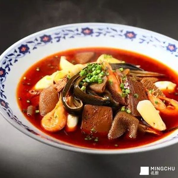 这道菜是在原有的毛血旺里加入海鲜制作而成。