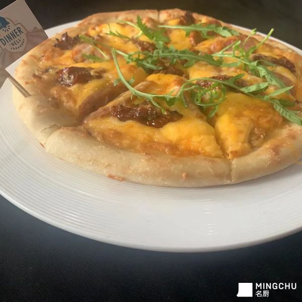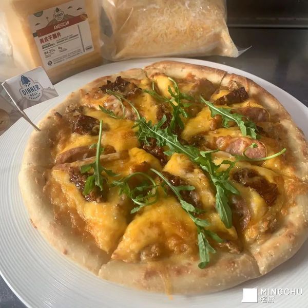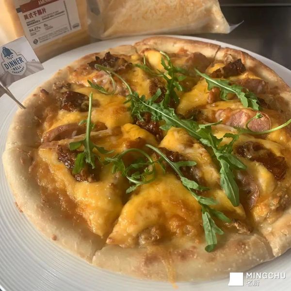 意大利黑椒香肠搭配上香料大蒜酱,用餐奶酪来增加披萨的香味,最后搭配上芝麻菜! #第93期试用 #餐铃铛奶酪线上创意 Pizza 挑战赛